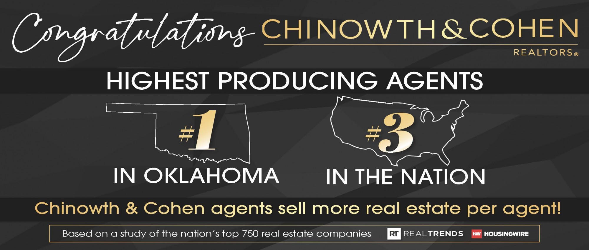 According to a recent study, Chinowth & Cohen REALTORS® has the highest producing agents in Oklahoma and ranks third nationally.